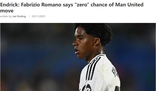 知名转会专家罗马诺透露,法甲球队正与皇马洽谈恩德里克的租借。他通过个人社交媒体再次强调,曼联绝无可能签下恩德里克,概率为“零”。“恩德里克去曼联的传闻是零,因为他想踢球。他准备好竞争,就像现在在皇马一样,但他最需要的是稳定出场时间展示自己、继续成长。”
